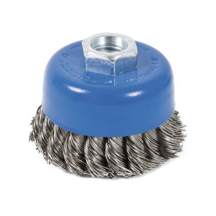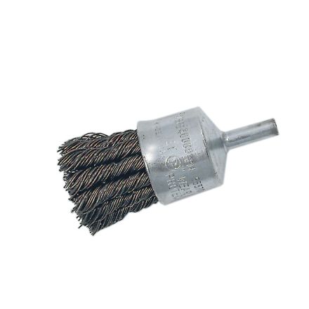 JET brosse boisseau, high performance, pinceau 3 po diam., fil noué /type de fil, 0.Diamètre du filament/fil 02 po, garni acier inoxydable, 12500 tr/min maximum, 5/8-11 nc dia. Tige