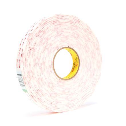 Ruban adhésif double face 3M vhb, sensible à la pression, longueur 36 m, largeur 1 po, épaisseur 0,045 po, 3 mil revêtement de papier, blanc, adhésif acrylique à usage général, acrylique renfort en mousse, 300 deg f fonctionnement maximum, 200 deg f fonctionnement minimum