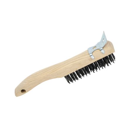 JET brosse à gratter à la main, brosse 5-1/2 po l x 1-1/16 po w, 1-1/8 po de longueur de coupe, garniture dacier au carbone, 4 x 16 rangs, chaussure, manche en bois dur séché au four, 10 po de longueur hors tout