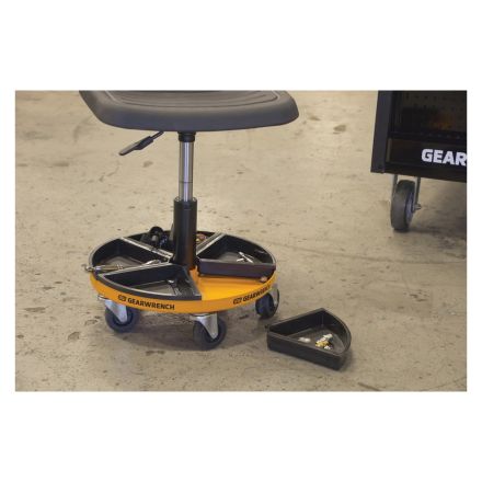 Gearwrench siège de mécanicien, pivotant réglable en hauteur, Capacité de 300 lb, 18 à 22 po de hauteur, à toute épreuve lanceur, Roulette 3-1/2 po, 5 roues, cadre en métal enduit de poudre