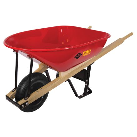 Garant Brouette , qualité industrielle à toute épreuve)., gamme : Pro Series, capacité de 6 pi³, plateau en acier, manche en bois dur, manche de 64 po, 1 roue, roue pneumatique à 4 plis, diamètre de roue de 16 po, largeur de roue de 4 po, axe de 3/4 po de diamètre, rouge , émaillé