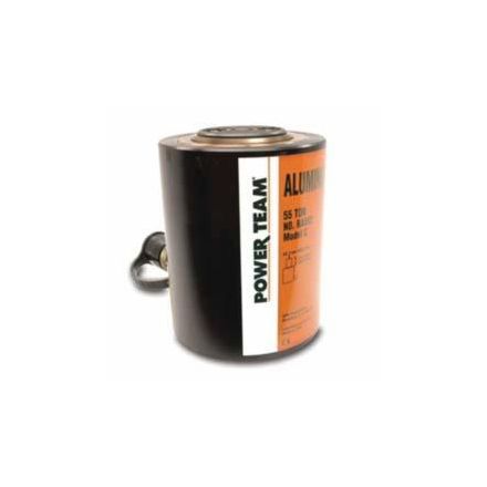 Power Team vérin hydraulique, rappel par ressort à simple effet à usage général, gamme : ra, 20 tonnes, 2-3/8 po diam. trou dalésage, Course de 4-1/8 po, Rétractation 8-3/8 po h, support de base, 2 po rod diam., 9030 lb/po-ca, aluminium boîtier, enduit dur, 3-3/4 po dia ext