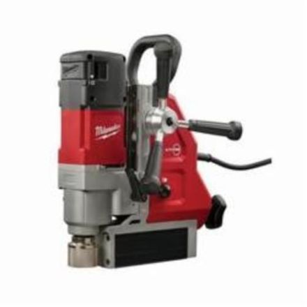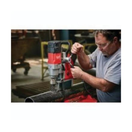 Kit magnétique foret Milwaukee, permanent, mandrin 3/4 po, course de broche 5-3/4 po, vitesse de broche 475/730 tr/min, vitesse de broche 2, pression de 750 lb foret 1/4 po foret au centre de la base, 12-1/4 po de hauteur totale, 2,3 hp, 120 vca, 13 a, 11-1/4 po l x 7-1/2 po w