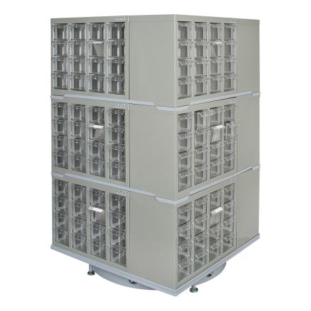 ARMOIRE INDUSTRIELLE ROBUSTE AVEC CARROUSEL A TIROIRS, ACIER, 192 TIROIRS, 27" LA X 27" P X 48" H, GRIS