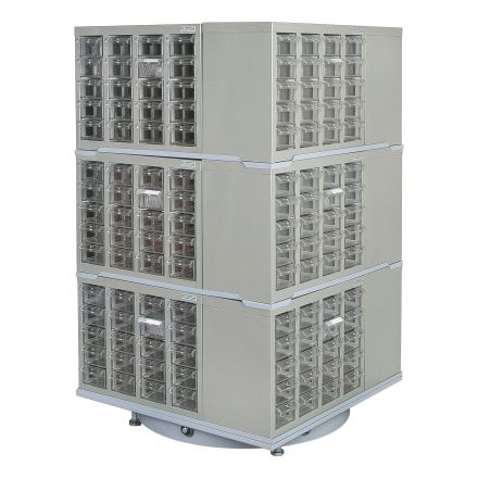 ARMOIRE INDUSTRIELLE ROBUSTE AVEC CARROUSEL A TIROIRS, ACIER, 240 TIROIRS, 27" LA X 27" P X 48" H, GRIS