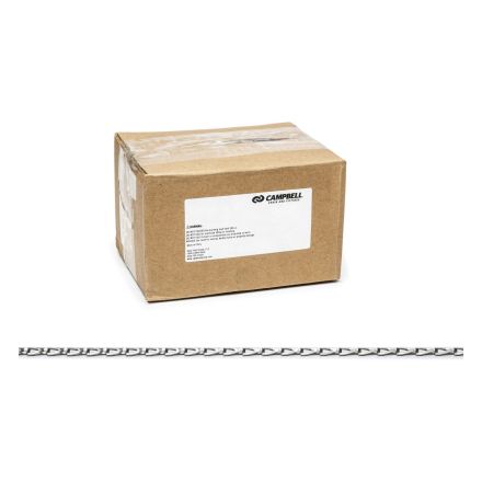 Chaîne de ceinture Campbell, #8 commerce, longueur de 100 pi, charge de 75 lb, acier inoxydable 304, acier inoxydable poli