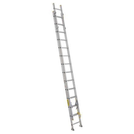Échelle à rallonge Featherlite, super - à toute épreuve, gamme : 4200d, longueur totale de 28 pi, code ansi : type ia, 300 livres, aluminium, longueur de travail maximale de 25 pi, 14.Longueur de section de 16 pi, 16-15/16 po largeur extérieure de la base de la chaussure, rail résistant aux marches, chaussure de sécurité pivotante