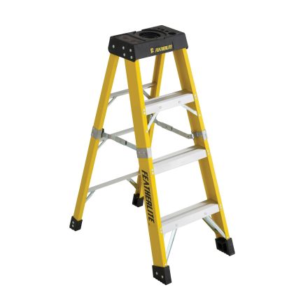 Escabeau Featherlite, extra - à toute épreuve, gamme : 6400, hauteur de léchelle 4 pi, charge de 300 lb, code ansi : type ia, fibre de verre, 21-1/4 po de base étalée, largeur inférieure de 29-7/8 po