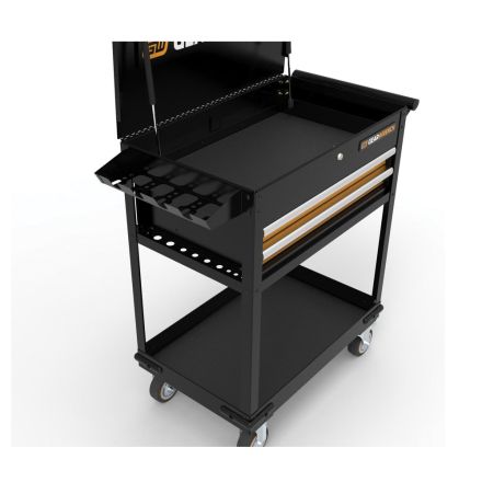 Gearwrench tout usage panier, 42 po de hauteur, 20 po tiroir, 2 tiroirs, 4 roulettes, Roulette 5 x 2 po, Capacité de 450 lb, poignée elliptique, roulette en acier/polyuréthane, couvert de poudre, noir/orange
