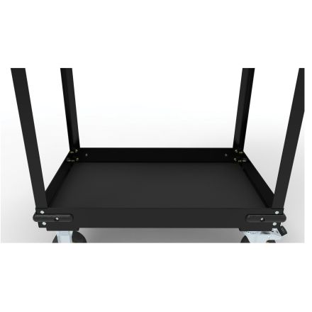 - (4) large heavy duty polyurethane casters for greater mobility and strength, (2) stationary and (2) dual-locking that lock caster pivot and wheel rotation