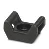 Embase pour collier serrant large de jusqu'à 9 mm, vissable, trou de fixation 5 mm, traversée 2 côtés