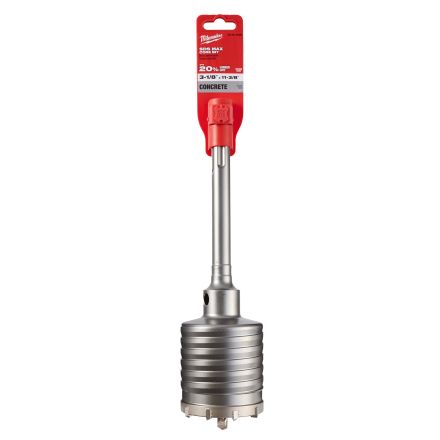 Milwaukee fraise à carottage, 1 pièce, 3-1/8 po foret taille - fraction, 3,125 po foret taille - pouce décimal, longueur totale 11-3/8 po, profondeur de coupe 3 po, 45/64 po queue, sds max queue, arête de coupe en carbure, argent