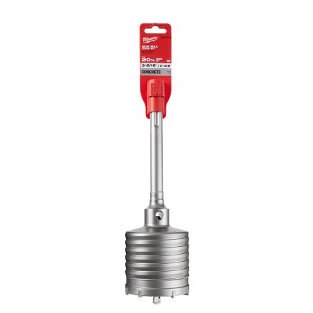 Milwaukee fraise à carottage, 1 pièce, 3-9/16 po foret taille - fraction, 3,5625 po foret taille - pouce décimal, longueur totale 11-3/8 po, profondeur de coupe 3 po, 45/64 po queue, sds max queue, arête de coupe en carbure, argent