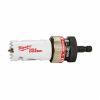 Milwaukee ice hardened scie cloche, gamme : hole dozer 49-56, 3/4 po diam., profondeur de coupe 1-5/8 po, 6, longueur hors tout 2-1/8 po, 1/4 po diam. X 3-1/2 po perceuse en équerre, tranchant bi-métal/8 % cobalt, corps en acier au carbone, tranchant denté, 460/230/300/690 tr/min, mandrin 3/8 po, round queue, utilisez arbre : 49-56-7210, 49-56-7240, 49-56-7250 et 49-56-9100 à changement rapide arbre, blanc, matériaux applicables : aluminium, fonte, acier doux, tôle métal et acier inoxydable