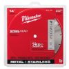 Milwaukee steelhead lame de scie diamantée, segmenté, diamètre 14 po lame, 1 po arbre/ queue, largeur de coupe 1/8 po, condition de coupe à sec, standard bond, 5460 rpm maximum, matériaux applicables : métal et acier