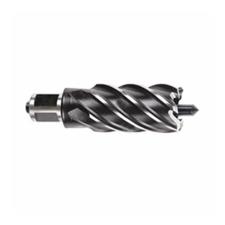 Fraise annulaire Milwaukee, 7/8 po dia de coupe, profondeur de coupe 2 po, 3/4 po queue, plat à souder queue, tranchant hss, hss, oxyde noir, matériaux applicables : aluminium, laiton, cuivre, fer, acier et bois
