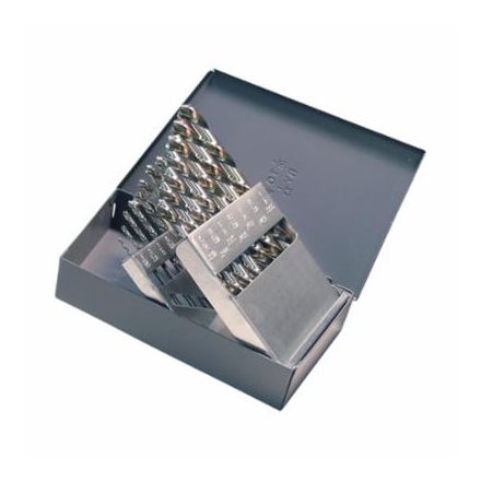 Chicago-Latrobe Ensemble foret longueur jobber, gamme : 150 l, système de mesure impérial, 1/16 po taille minimale de foret foret, 1/2 po taille maximale de foret foret, 118 deg foret angle de pointe, 15 pièces, spécifications : coupe à gauche, pointe radiale, goujure hélicoïdale, queue droite, hss, brillant