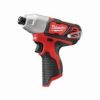 Visseuse à percussion sans fil Milwaukee, high performance, outil nu, gamme : m12, hex/ droit prise, 1/4 po prise, 3300 cpm, 1000 po-lb, 2500 tr/min, 12 vca, type de batterie lithium-ion, batterie 1,5 ah, sans batterie incluse, métal boîtier, poignée souple/poignée en t, 6- 1/2 po de longueur totale