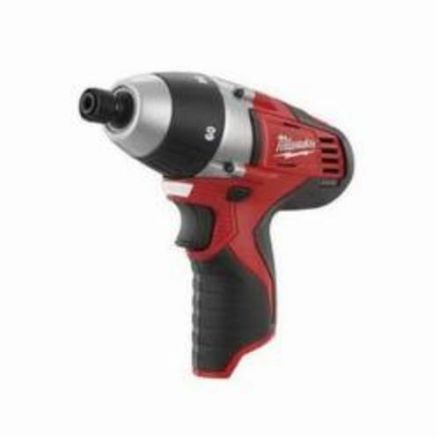 Tournevis sans fil Milwaukee, compact et léger, outil nu, gamme : m12, mandrin 1/4 po, mandrin hexagonal/sans clé, vitesse à vide de 750 tr/min, 2 vitesses, 60/80 po-lb, 12 v cc, type de batterie lithium-ion, métal boîtier, poignée en t, rouge, commande de commutateur de déclenchement à vitesse variable, longueur totale 7-1/2 po