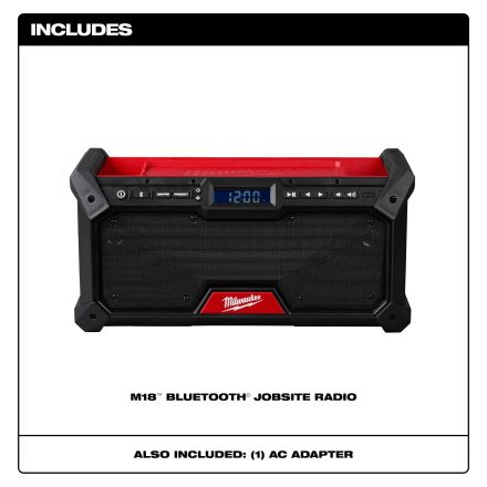 - Power the radio with any M18 battery or the provided AC Adapter for complete versatility