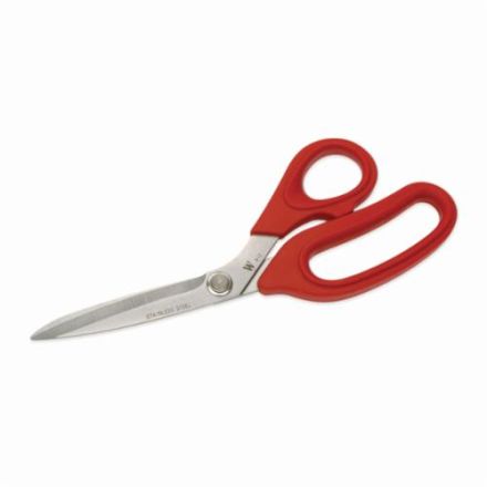 Ciseaux de ménage en crescent wiss, légers, 3-1/2 po longueur de coupe, droit type de coupe, dentelé lame, 3-1/2 po l lame, acier inoxydable lame, tranchant, longueur totale 8-1/2 po, prise coussinée poignée/bow agrandie/anneau, poignée en plastique dur, main droit, matériaux applicables : carton, artisanat, tissu et papier, rouge