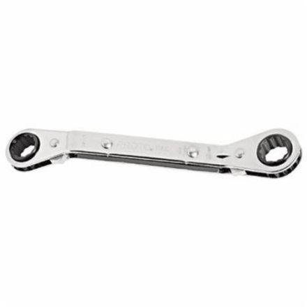 Proto clé à bouts fermés, réversible, système de mesure : impérial, double bout/à décalage/clé à cliquet, ouverture clé 1/2 x 9/16 po, 12 points, longueur totale 6-1/2 po, 25 deg à décalage, 1 po bout largeur, 1/2 po bout épaisseur, acier allié, entièrement poli