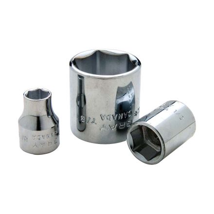 Gray Tools socket, système de mesure : impérial, prise hexagonal, 3/8 po prise, prise de longueur standard, prise 5/16 po, longueur totale 0,94 po, 0,66 po largeur d embout, douille 0,46 po largeur, 6 points, 0,32 po hâle de boulon, acier à outils, miroir chromé