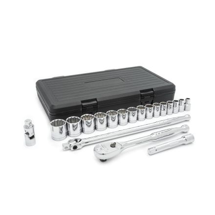 Gearwrench ensemble doutils de mécanicien, norme impériale, 1/2 po prise, 12 points, 19 pièces, boitier moulé type de stockage des outils, oui rangement doutils inclus, spécifications spécifiées asme respectées, acier allié, Chrome poli