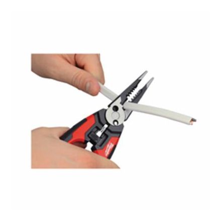 Pince combinée Milwaukee, 6-en-1 à une seule main à ressort, 18 à 10 awg plein, 20 à 12 awg capacité nominale toronnée, mâchoire lisse, 2-1/4 po l x 1-1/2 po w mâchoire, alliage forgé mors en acier, longueur totale 7-1/2 po, oui pince à dénuder, oui coupeur latéral, poignée caoutchoutée ergonomique, noir/rouge