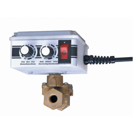 - A solenoid, controlled by a solid state timer, opens and closes the drain valve in 1 to 60 minute cycle times and 1 to 30 second blow-down times