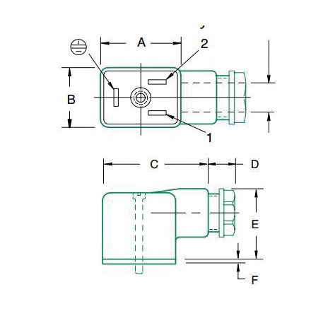 Numatics Ensemble de connecteurs , rectangulaire à 2 broches, à utiliser avec : l1/mark 3 gamme électrovanne, 22 mm din, noire, 1.97 wx1.1 po dx 0.83 po heures
