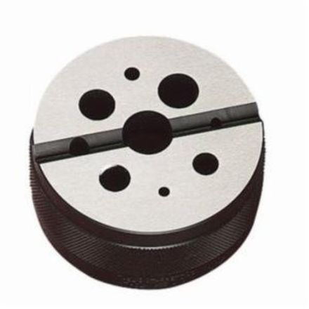 - Bench block is 3 in (75mm) in diameter by 1-1/2 in (38mm) high with oversize holes from 1/8 to 5/8 in (3-16mm) diameter and one v-groove
