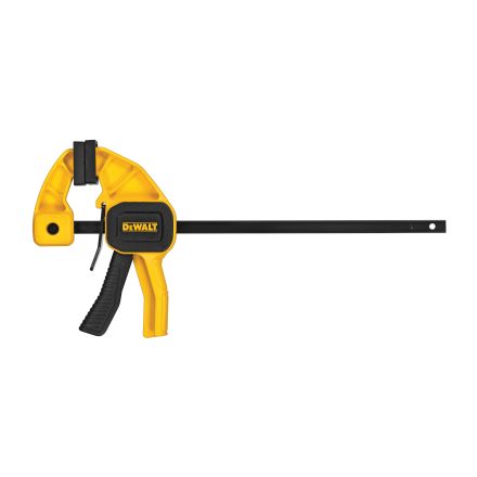 Pince à gâchette DeWALT, 1 main petite, serrage 4-1/2 po, profondeur de gorge 1-1/2 po, serrage 35 lb, poignée en nylon renforcé, barre en acier, noir/jaune