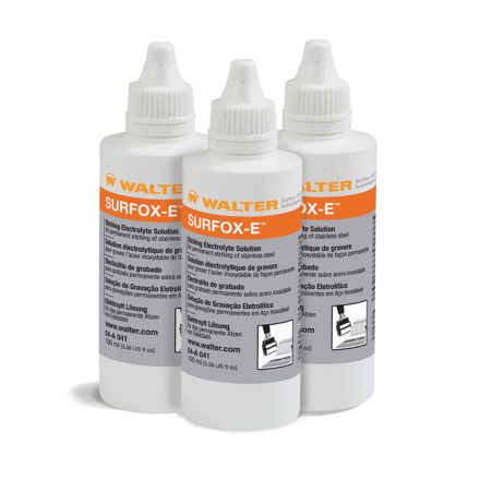 Walter Surface Technologies Solution électrolytique , gamme : surfox-e, 100 ml, flacon, liquide, transparent, inodore, composition : acide citrique, >93.3 point déclair deg. C, 7 ph, matériaux applicables : Acier inoxydable 304