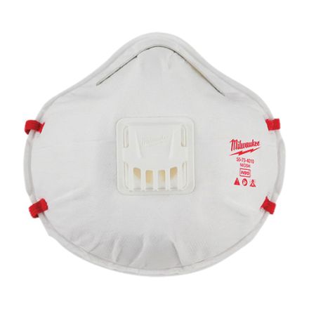 Respirateur à valve Milwaukee, jetable moulé, taille universelle, classe de filtre n95, réglable double/souple serre-tête, blanc
