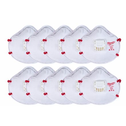 Respirateur à valve milwaukee, moulé JETable, taille universelle, classe de filtre n95, réglable double/doux serre-tête, blanc