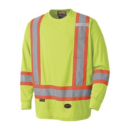 Chemise de sécurité PIONEER, à manches longues, gamme : v1051260, le sexe des femmes, taille l, jaune/vert haute visibilité, polyester doiseau, poitrine de 42 po, fermeture auto-agrippante, 1 poche