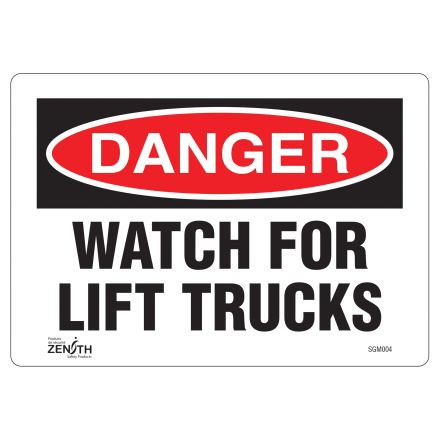 ENSEIGNE «WATCH FOR LIFT TRUCKS», 7" X 10", VINYLE, ANGLAIS