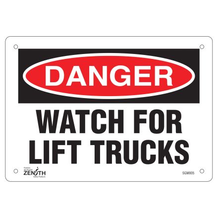 ENSEIGNE «WATCH FOR LIFT TRUCKS», 7" X 10", PLASTIQUE, ANGLAIS