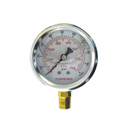 TOPRING jauge de pression de liquide, la norme, gamme : s55, pression de 0 à 100 lb/po-ca, connexion 1/4 po npt, cadran de diamètre 2-1/2 po, +/- 1.Précision de 6 %, rempli de liquide : glycérine, -18 à 60 deg c, montage inférieur, acier inoxydable 304
