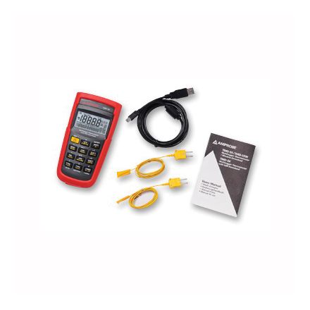 Thermomètre à thermocouple Amprobe, numérique à enregistrement multiple, thermocouple e/j/k/n/r/s/t, 2 entrées, -328 à 3212 deg f/-200 à 1767 deg c, +/-0.Précision 05 %, triple rétroéclairage écran lcd, aaa alcaline 1.5 VCC batterie