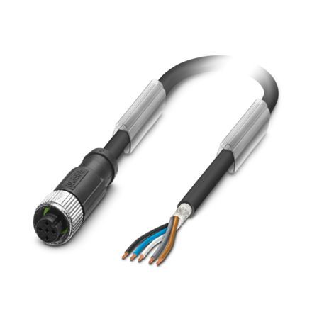 Câble pour capteurs/actionneurs, 5-pôles, PUR exempt d'halogène, gris-noir RAL 7021, blindé (Advanced Shielding Technology), extrémité libre, sur Connecteur femelle droit M12, codage: A, longueur de câble: 20 m